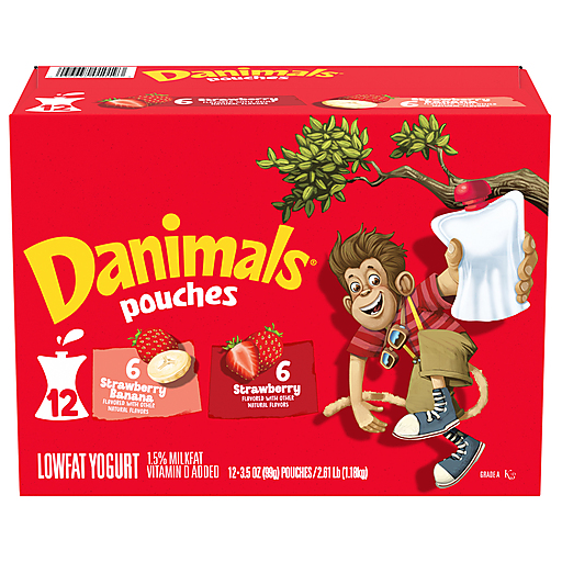Hop into adventure with Danimals Strawberry and Strawberry Banana Pouches. No spoon? No problem. Each squeezable yogurt delivers an explosion of strawberry and strawberry banana flavor on-the-go. With no artificial flavors, high fructose corn syrup or artificial colors, Danimals yogurt pouches easy snacks get high-fives all around. Kids enjoy a neat-o yogurt that’s fun to eat. Parents get a mess-free snack that's also a good source of calcium and vitamin D. Everyone wins. That’s why Danimals is the #1 kids’ brand in the yogurt aisle.* It’s the missing puzzle piece in their lunch box, the smooth way to serve breakfast, the kids snack that’s easy to say yes to. Stay extra cool with the Bongo switcheroo—move these low fat yogurt pouches to the freezer overnight for lunch boxes in the morning! Let their imaginations run wild with Danimals smoothies and cups in kid-inspired flavors. With Danimals, you’re ready for adventure – anytime, anywhere. *Source: IRI Unify (52 Weeks as of 12/31/21).