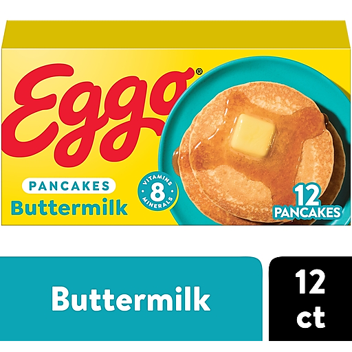 Wake up and greet the day with a true blue classic! Eggo Buttermilk pancakes are light, fluffy, and tasty as ever - just like you remember them. They’re the perfect balance of warm goodness and yummy flavor, and they pair perfectly with your favorite breakfast sides. Crafted with delicious ingredients and the smooth taste of buttermilk, these frozen pancakes couldn’t be easier to make. Pop them in the microwave or oven and feel good about what you’re serving your family; They provide a good source of 8 vitamins and minerals and are made with no artificial colors or flavors (see nutrition information for sodium content). Conveniently packaged and simple to prepare, Eggo Buttermilk pancakes have been filling kitchens with sweet aromas and warm memories for decades. Made to enjoy as part of breakfast, add your favorite morning toppings such as butter and syrup, jelly or jam, or whipped cream. No matter how you top ’em, it's always an “mmmmm” moment. They're just so delicious, why would you L'Eggo your Eggo?