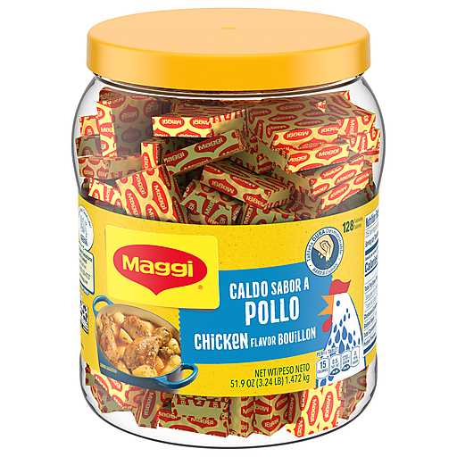 Maggi Chicken Flavor Bouillon Hard Tablets are a staple in Latin America, adding a burst of authentic flavor to your everyday dishes. The chicken flavor bouillon tablets are hard and crumbly. The chicken flavor bouillon is perfect for preparing broth to start a delicious chicken noodle soup, as well as rice, beans, chicken base for stews, soups, pastas and vegetables, or marinating poultry. Simply crumble 1 Maggi chicken bouillon cube into 2 cups of boiling water until dissolved to make 2 cups of chicken broth as a starter for an easy dinner.