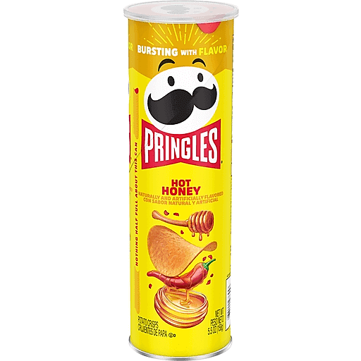 Turn up the heat and bring on the sweet with Pringles Hot Honey Potato Crisps. Includes one, 5.5-ounce can. Enjoy the sweet taste of honey with a kick of spice in every bite. Cayenne pepper mixed with honey flavor makes these insanely light, crispy, and never greasy crisps satisfyingly hot and sweet at the same time. Open wide and treat your taste buds to this insanely delicious flavor combination that hits the spot every time. Stacked in a convenient can, Pringles makes it easy to create your own snacking moments whenever and wherever life takes you. Pack a can for a picnic to share with the whole family. Stash a can in your bag or pantry to enjoy anytime. Share Pringles at your next get-together to turn up the excitement among family and friends. Get your hands on Pringles Hot Honey Potato Crisps for sweet and spicy awesomeness that keeps you coming back, stack after stack.